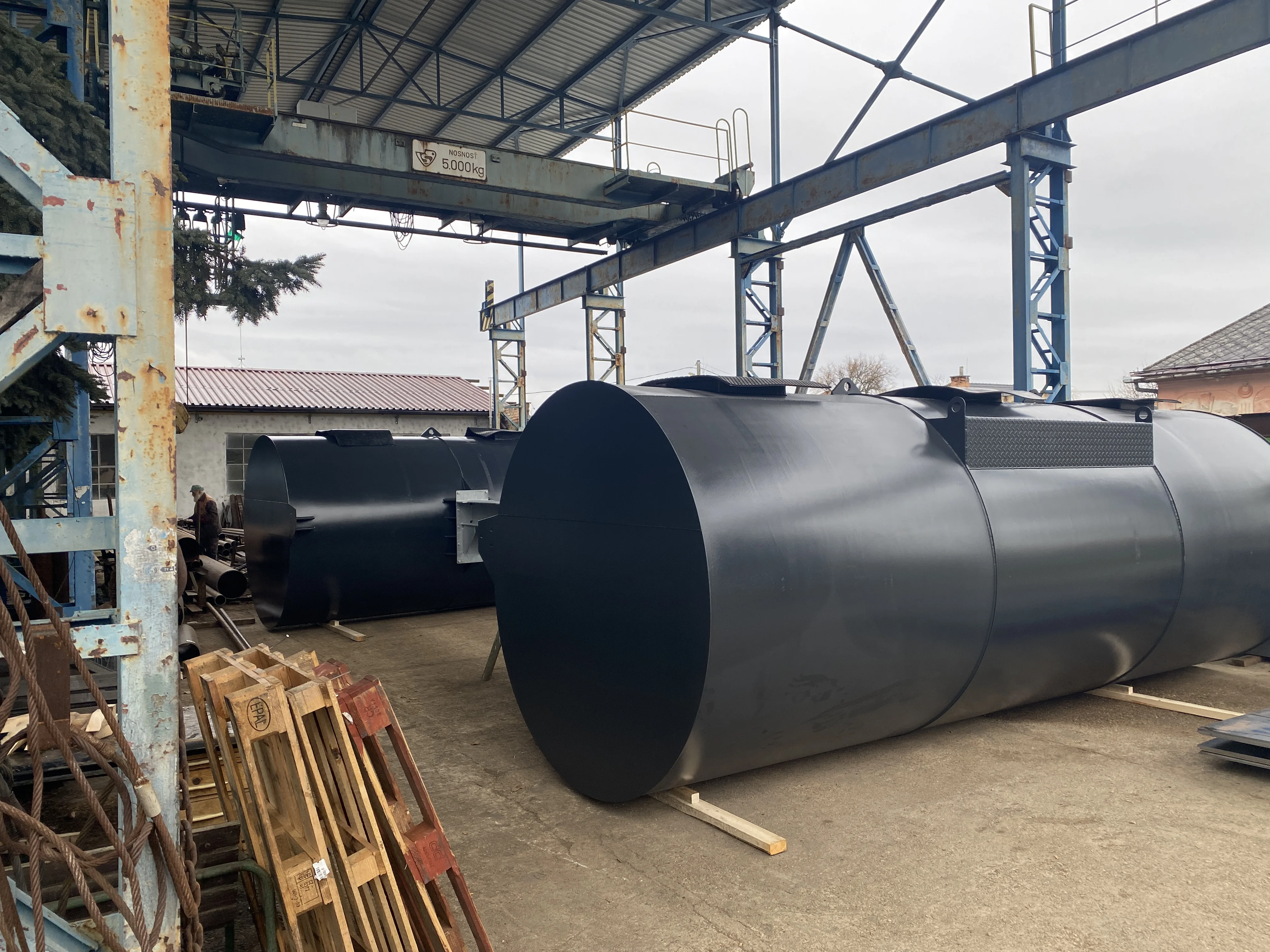 Výroba plávajcich pontónov k pásovým dopravníkom. Jedná sa o oceľové celozvárané pontóny pod pásové dopravníky na vodných plochách.