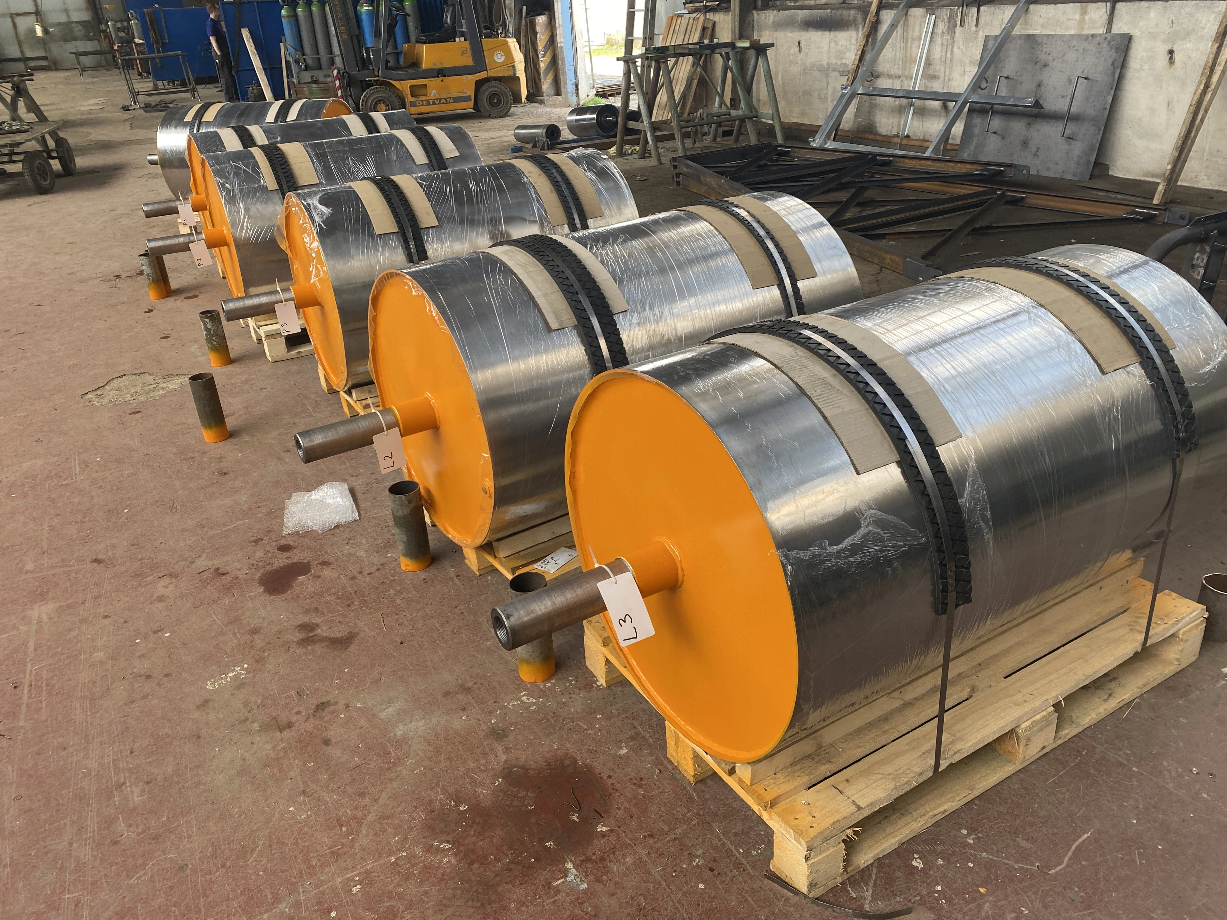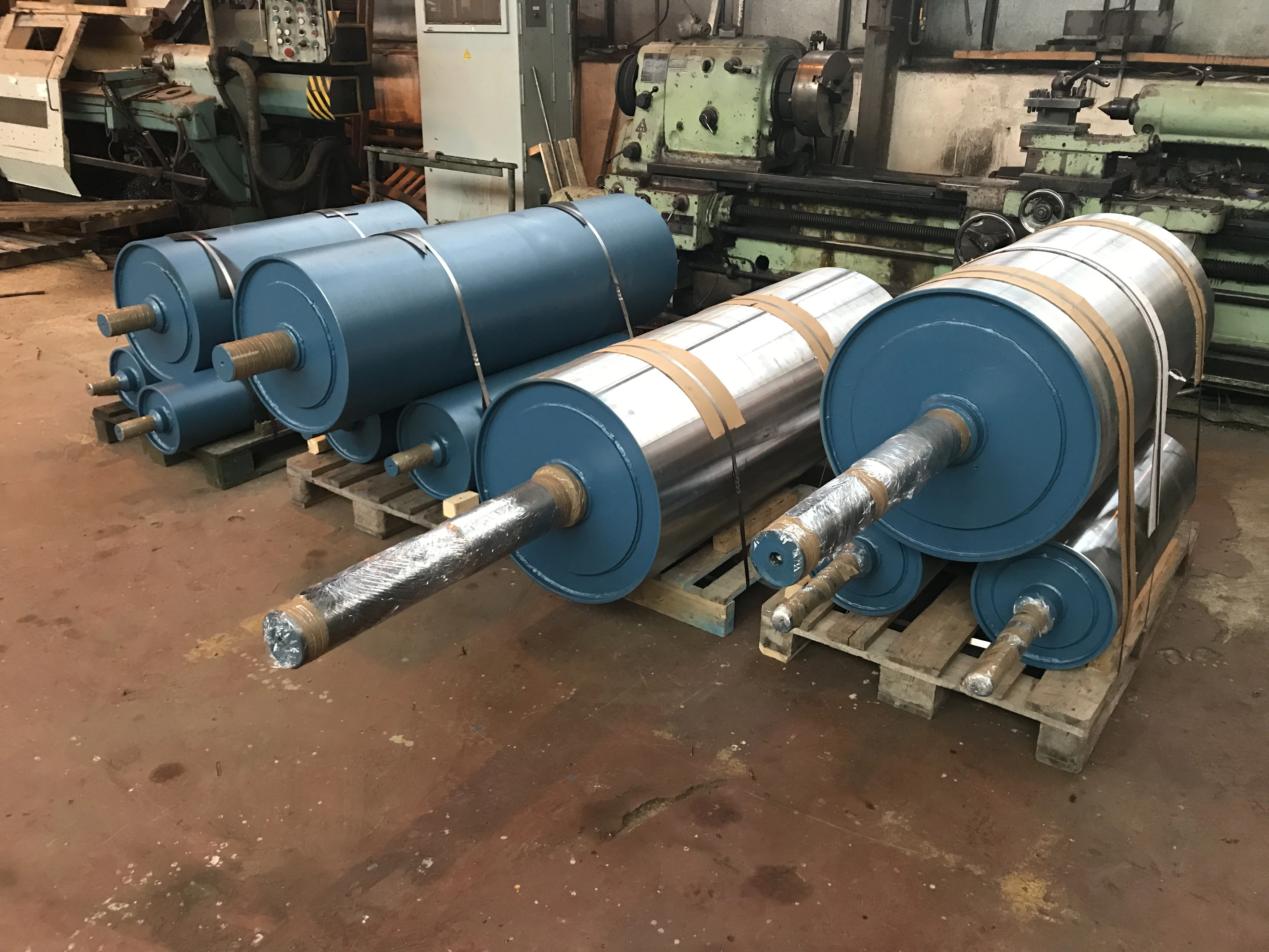 Výroba a pogumovanie hnacích bubnov rôznych rozmerov pre pásové dopravníky. Pogumovanie za studena.